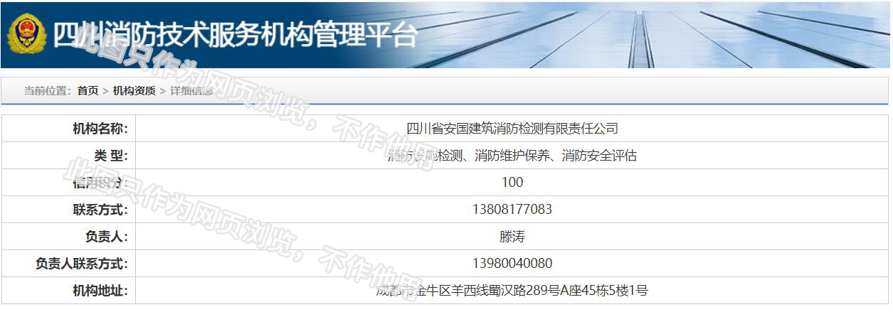 四川省安國(guó)建筑消防檢測(cè)有限責(zé)任公司,成立于1998年,經(jīng)四川省公安消防總隊(duì)批準(zhǔn),工商部門(mén)注冊(cè)的獨(dú)立法人單位。 公司具有建筑消防設(shè)施檢測(cè)、電氣防火安全檢測(cè)、維修、保養(yǎng)及技術(shù)咨詢(xún)一級(jí)資質(zhì)的中介技術(shù)服務(wù)機(jī)構(gòu),獲得CMA計(jì)量認(rèn)證。主要業(yè)務(wù)范圍是:接受建設(shè)單位或有關(guān)單位委托,承擔(dān)新建、改建、擴(kuò)建建筑自動(dòng)消防設(shè)施技術(shù)檢測(cè)、電氣防火安全檢測(cè)、以及承接建筑消防設(shè)施維護(hù)保養(yǎng),對(duì)已交付使用的建設(shè)消防設(shè)施的運(yùn)行情況進(jìn)行運(yùn)行檢測(cè),開(kāi)展建筑消防設(shè)施的消防安全技術(shù)咨詢(xún)。公司設(shè)辦公室、總工辦、財(cái)務(wù)部、檢測(cè)部、維保部等職能機(jī)構(gòu),擁有一